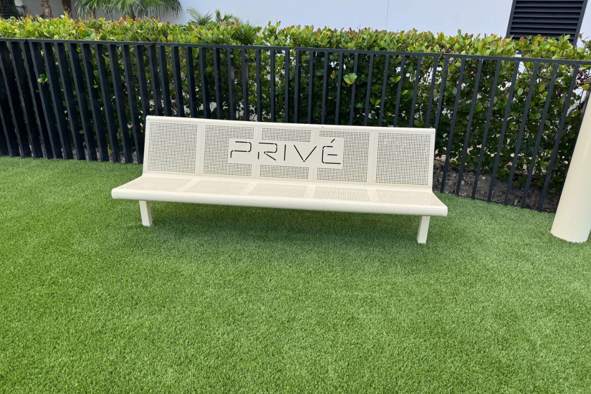 The playground at Prive Island Estates was designed for an exclusive condominium community surrounded by the bay on all sides. The available area was roughly the size of a tennis court but shaped like a teardrop, which required creative planning and engineering solutions to make optimal use of the limited space.