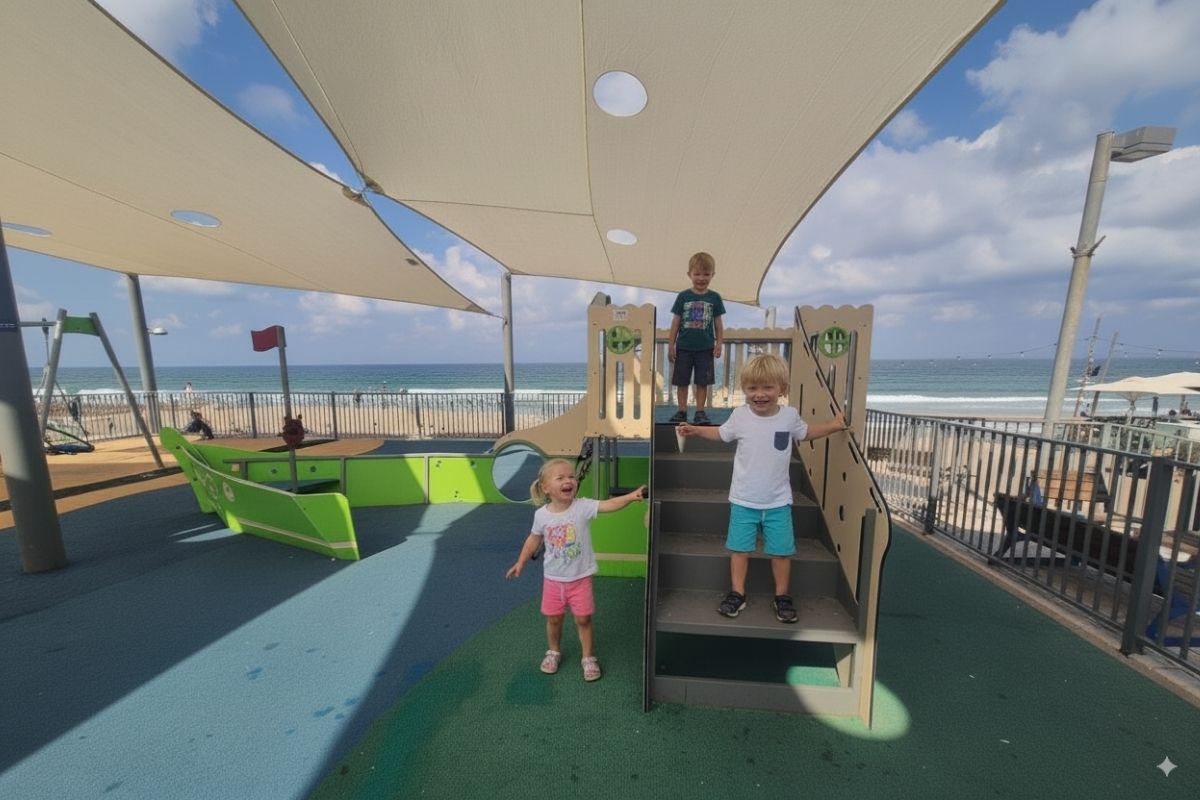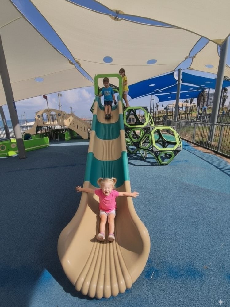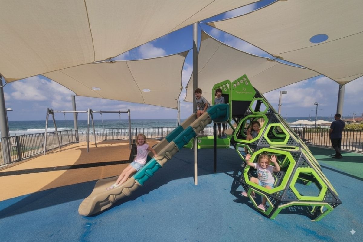Sea-Inspired Design: Each element of the playground tells a story of the sea: climbing structures that echo the nearby cliffs, a small boat for imaginative play and “sailing” adventures, and swings positioned to capture the breathtaking ocean views. Flowing lines and natural tones were chosen to mirror the waves and sea breeze, bringing the spirit of the coast into the play area.