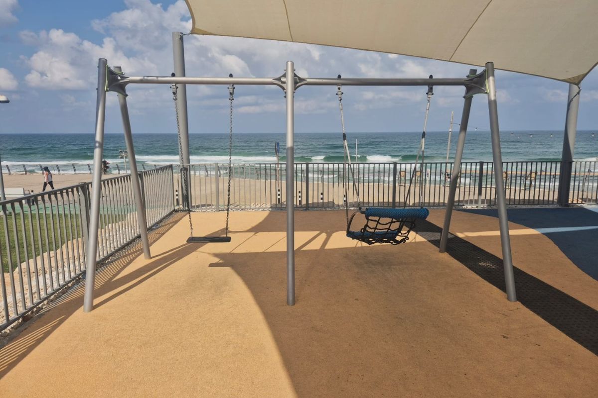 Given the playground’s proximity to the sea and constant exposure to salt, humidity, and strong winds, special attention was given to material selection: Robinia Wood – A durable, natural hardwood chosen for its exceptional strength and weather resistance. Its rich texture and warm appearance blend seamlessly with the natural surroundings. Stainless Steel Structures for Swings – Engineered specifically for coastal conditions, these stainless-steel constructions ensure long-term resistance to corrosion and salt exposure, while providing strength and safety for all users.