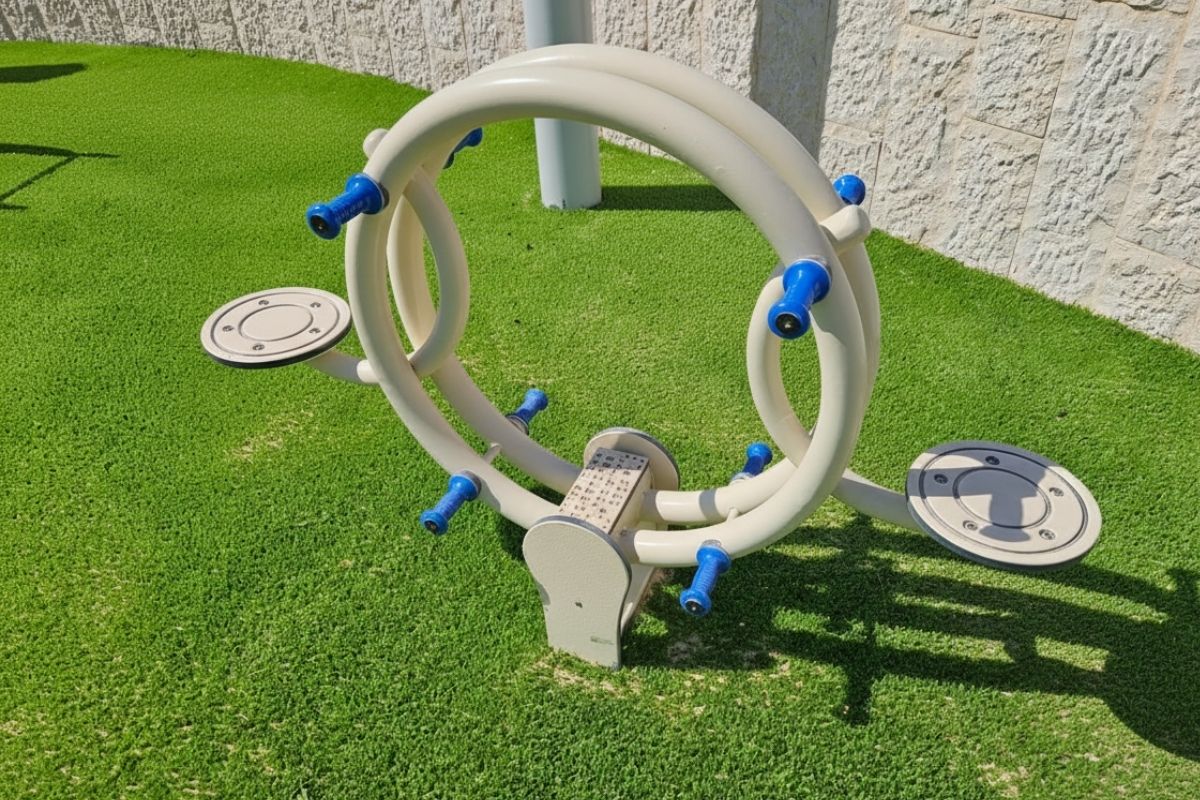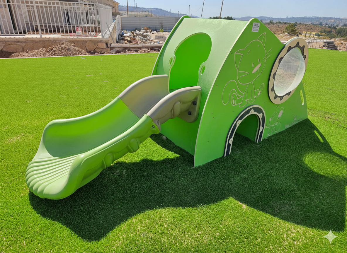 The layout was planned around two complementary experiences. The older zone concentrates active play into one main structure, while the toddler zone combines pretend play with simple climbing and motion elements, creating a confident, repeatable play cycle. Connecting the spinner to the main unit supported a more efficient use of space and helped keep the overall plan organized and