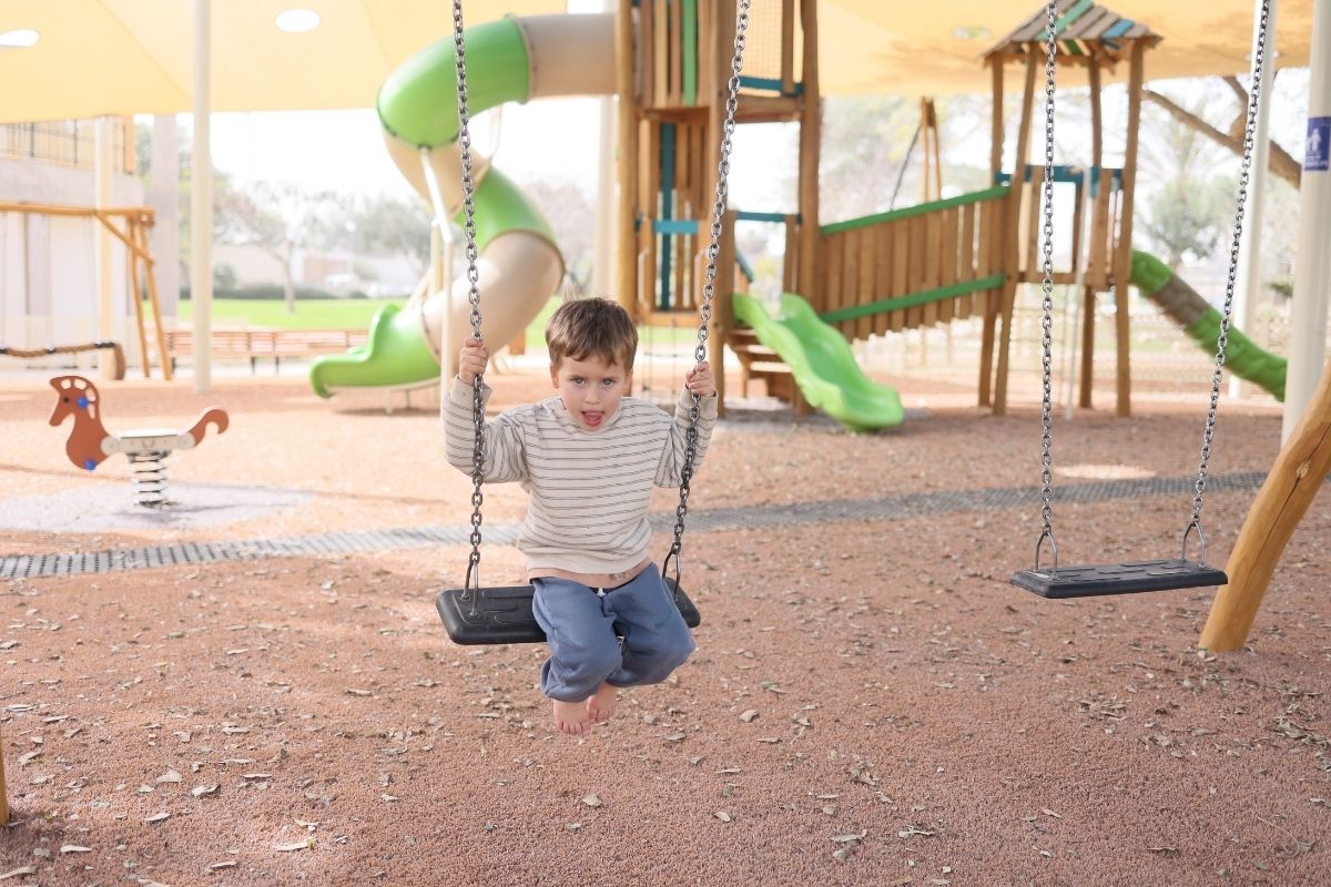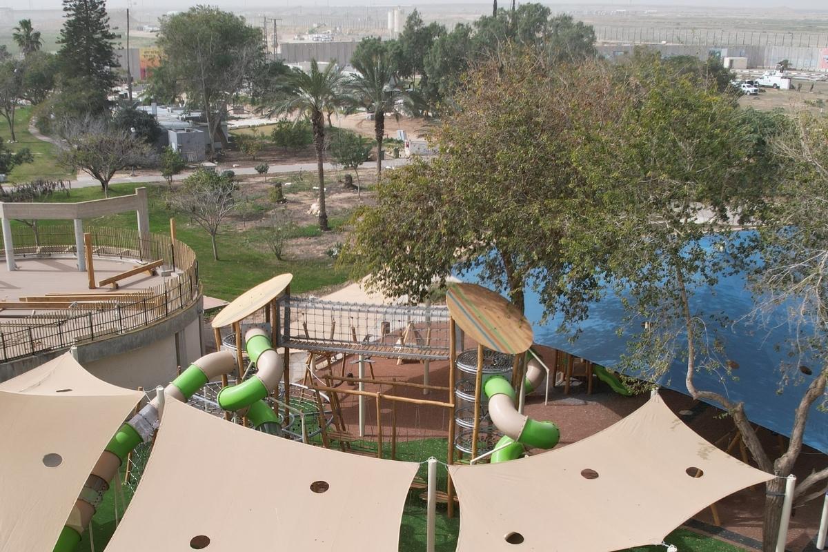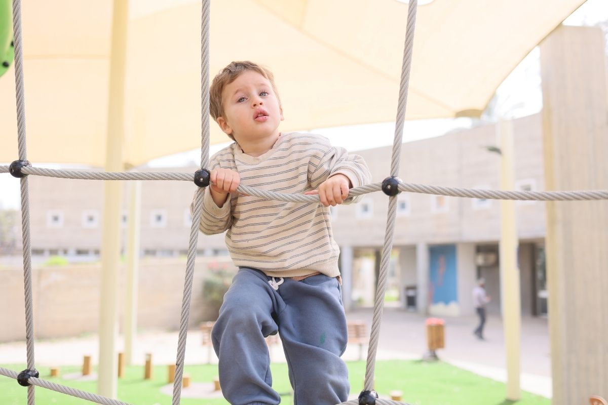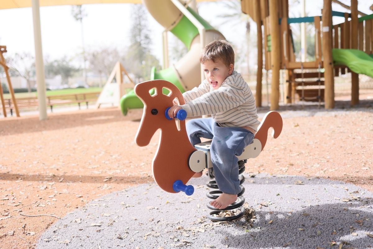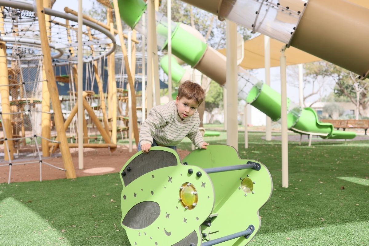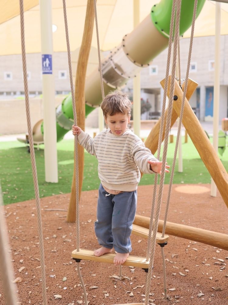 Psagot Playgrounds led the planning of a robinia wood playground centered around an iconic flagship structure. The multi-level play system includes tall towers, enclosed high slides, rope bridges, perimeter climbing nets, and elevated circulation paths.