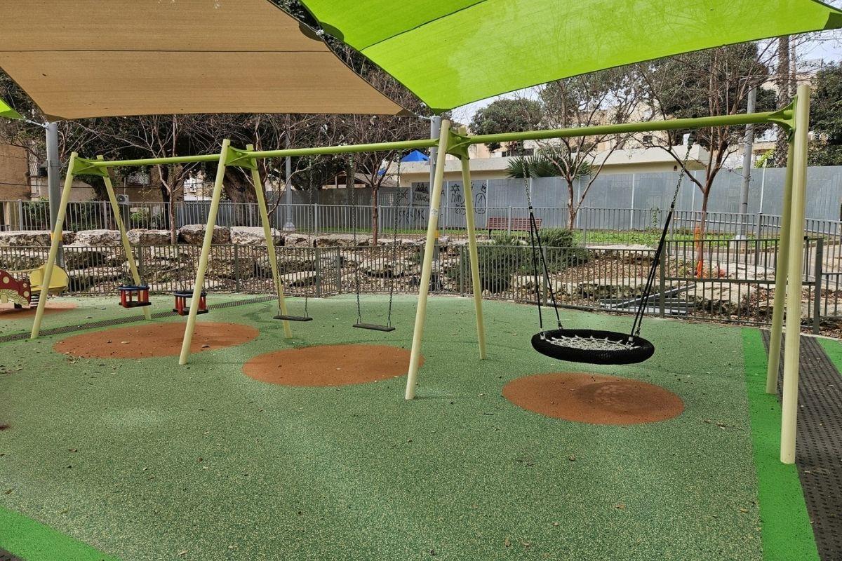 A neighborhood playground by Psagot Playgrounds designed as a welcoming and cheerful play space for young children and nearby families.
